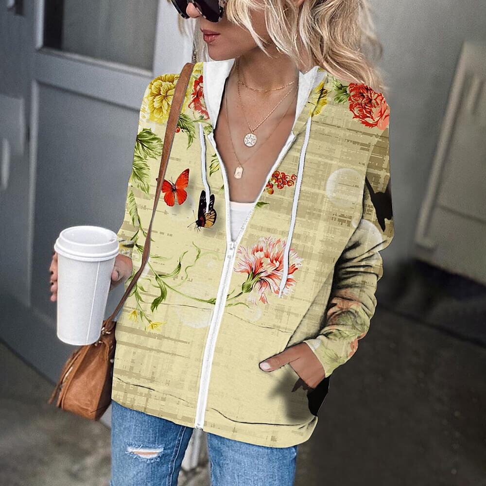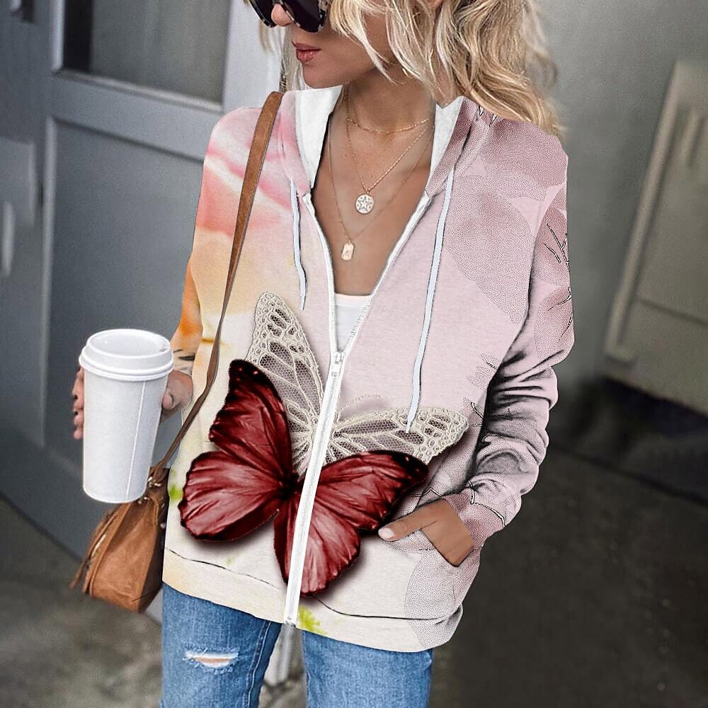 Zip Hoodie Sweatshirt Floral Butterfly Print Daily Sports 3D Print Active Streetwear Hoodies Sweatshirts Black Blue.
